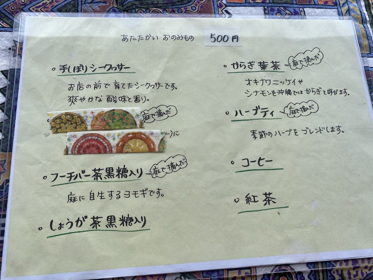 Kikai Island Yui LLC.Yui Cafe. Menu